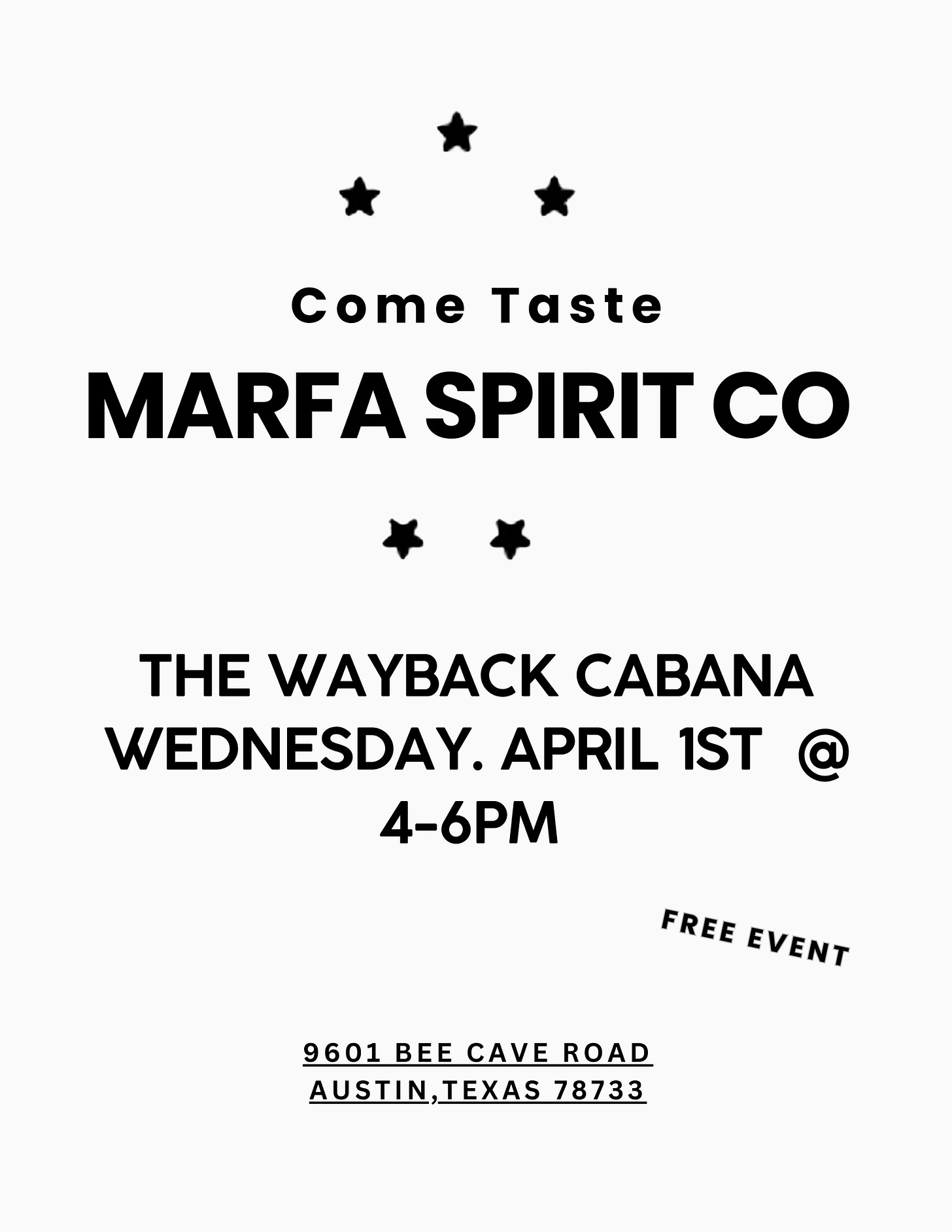 COME TASTE WITH US!MARFA SPIRIT CO X THE WAYBACK The WaybackMar 30, 20262ShareArticle voiceover0:00-1:22Audio playback is not supported on your browser. Please upgrade.Stay late and grab a bite! reserve a tableThanks for reading! Subscribe for free to receive new posts and support my work.Subscribe