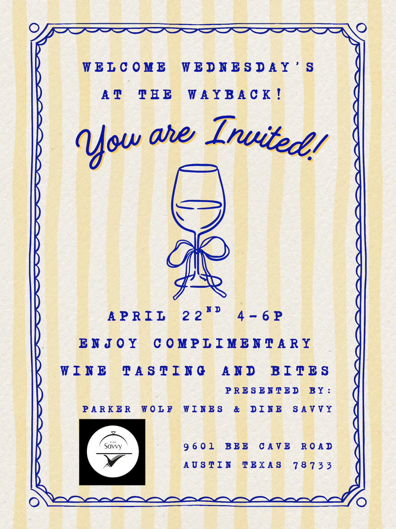 Pull up a seat — tomorrow evening, The Wayback is hosting an intimate wine tasting with Parker Wolf Wine Distributors, featuring three standout pours served from The Cabana, paired with light bites from our kitchen.